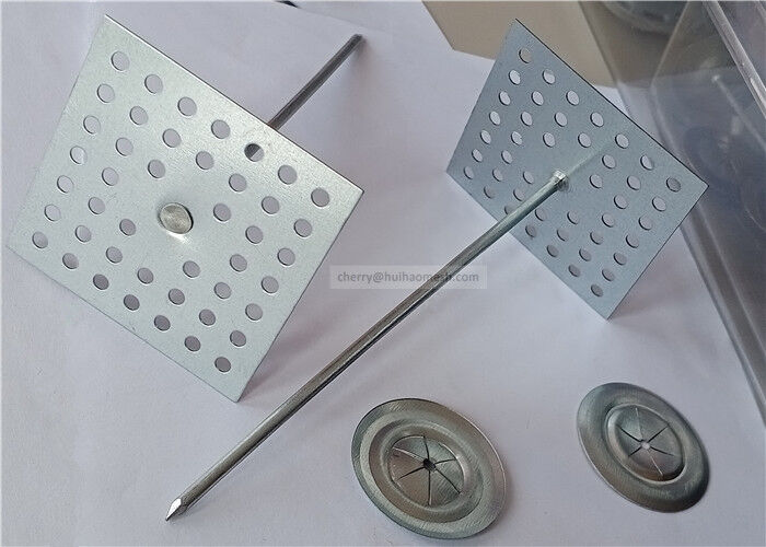Los colgadores de aislamiento con base perforada están hechos de clavos de metal y una base cuadrada perforada.